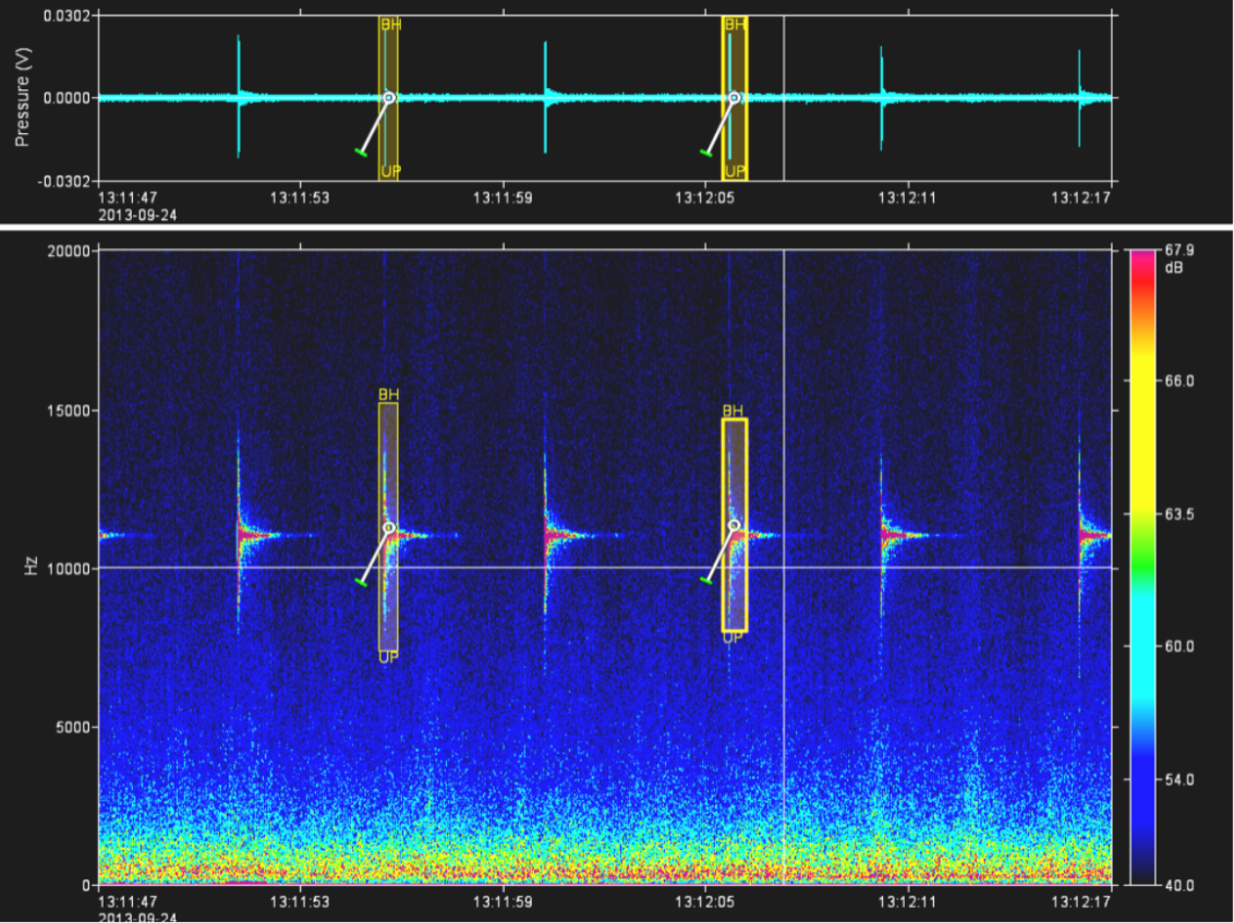 Our analysts provide real-time passive acoustic monitoring solutions in the field. The experienced PAM operators listen to the acoustic data and inspect the spectrograms of the measured sound levels in real time.